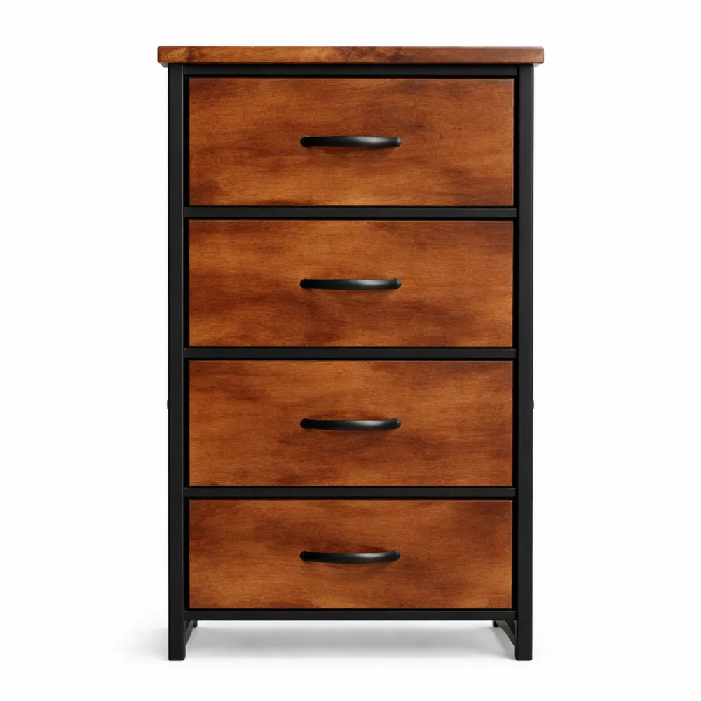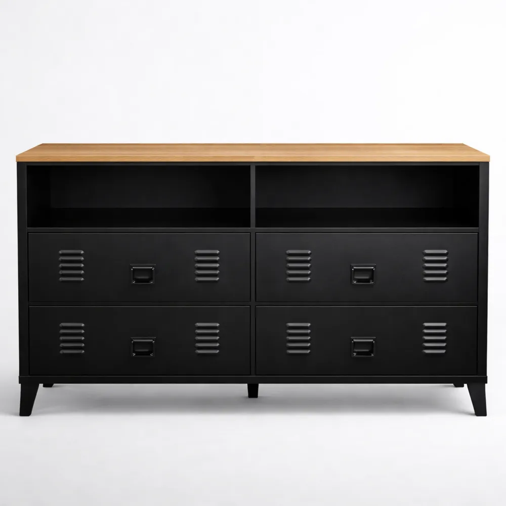 Commode industrielle 4 tiroirs bois et métal noir