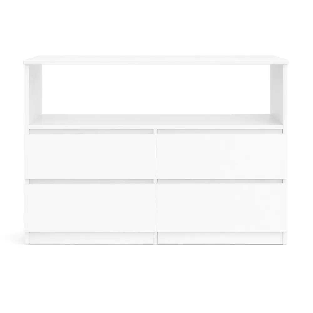 Commode 4 tiroirs avec niche, bois blanc, 100 cm