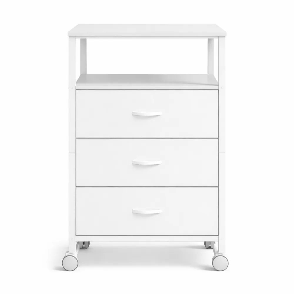 La table de chevet est équipée de 2 prises et 2 ports USB pour recharger plusieurs appareils simultanément. Avec un câble de 200 cm, elle peut être placée à distance de la prise électrique. Cette table dispose de 4 pieds avec roulettes universelles pour un déplacement facilité, permettant de la placer où vous le souhaitez. Cela simplifie le nettoyage quotidien et empêche l'accumulation de saleté. Le cadre en acier robuste offre un soutien fiable, assurant la stabilité de la table. Le bois imperméable et facile à nettoyer assure également sa durabilité. Les tiroirs en tissu non tissé avec poignées sont légers et simples à retirer. La table offre un grand espace de rangement avec 3 tiroirs en tissu et des étagères ouvertes pour organiser couvertures, livres, télécommandes et autres objets. Son design est adapté à la chambre, au salon ou aux petits espaces. Dimensions : 40 x 30 x 73 cm. Elle peut être utilisée comme table de chevet, table d'appoint ou table basse dans le salon.